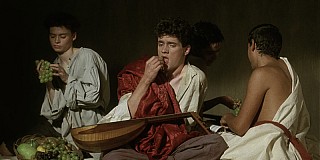 We schrijven 1610. De in armoede vervallen kunstenaar Caravaggio blikt terug op zijn turbelente leven. Het leven van een misdadiger, moordenaar en homoseksueel die ook de grootste schildervorst was van zijn tijd. Hij hield er een driehoeksverhouding op na met twee modellen voor zijn religieuze schilderijen : de straatboef Ranuccio en Rannucio’s maîtresse Lena. De film bestaat uit een opeenvolging, in flashbacks, van strakke, gestileerde tableaux vivants. Jarman herschept op deze wijze de originele schilderijen. Tegelijkertijd onderzoekt hij de homo-subtekst van de werken van caravaggio, speculerend over de relaties van de kunstenaar met zijn favoriete model Ranuccio. Caravaggio was het filmdebuut voor Tilda Swintom en haar eerste samenwerking met Derek Jarman. Vervolgens werkte zij mee aan alle volgende langspeelfilms van Jarman. Verder herkennen we ook de jonge Sean Bean in de rol van Ranuccio.